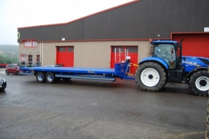 This high specification BC/32 was sold to Gavin Finnie by our local dealer, Ravenhill at Dyce. The trailer was specified with 560-45x22.5 radial flotation tyres, 10 stud 420 x 180 commercial axles, spring suspension, spring drawbar, front and rear harvest ladders, LED beacon, LED lights, LED worklights, air/oil brakes c/w load sensing, a rear toolbox, side marker lights, side crash barriers and finished in Newholland Blue.
