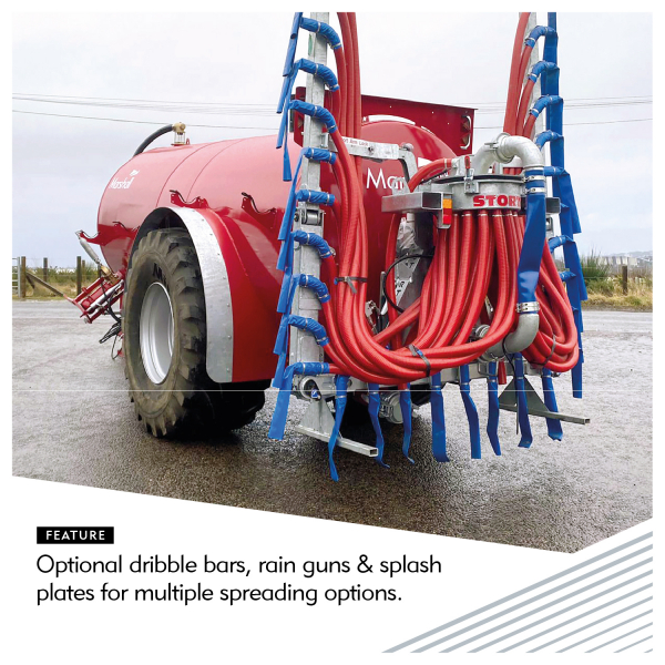 - Dribble bars, rain guns & splash plates for multiple spreading options.