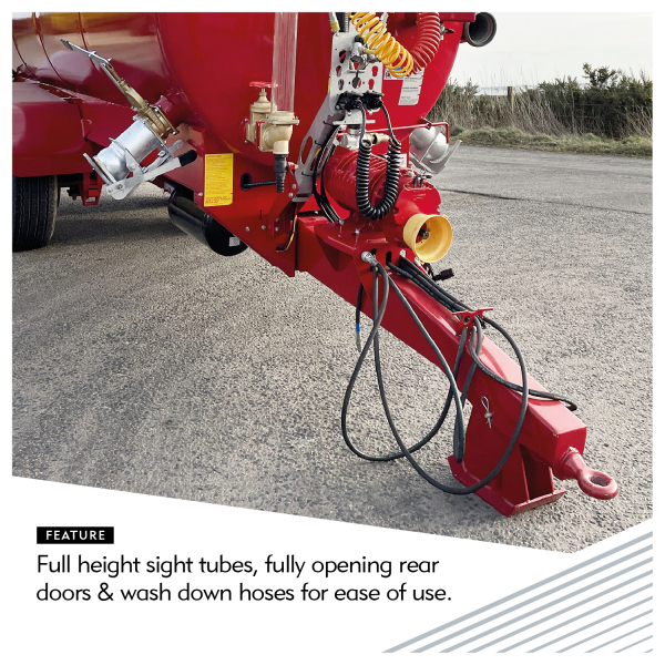 - Full height sight tubes, hydraulic changeover, stone traps, fully opening rear doors & wash down hoses for ease of use.