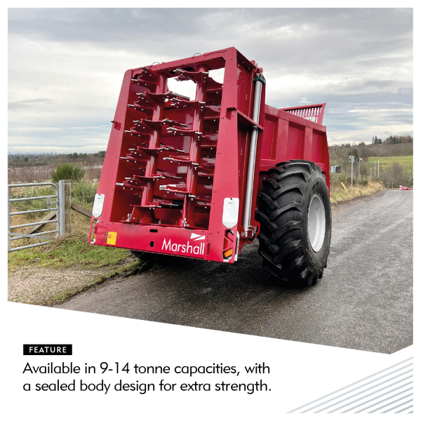 - Available in 9-14 tonne capacities, the sealed body design allows for handling everything from fresh straw-based dung to sloppy slurry without leaks.