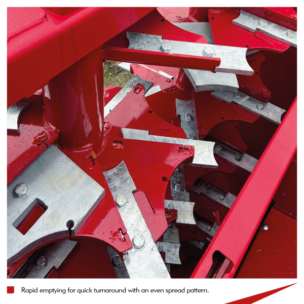 - Rapid emptying for quick turnaround with an even spread pattern.